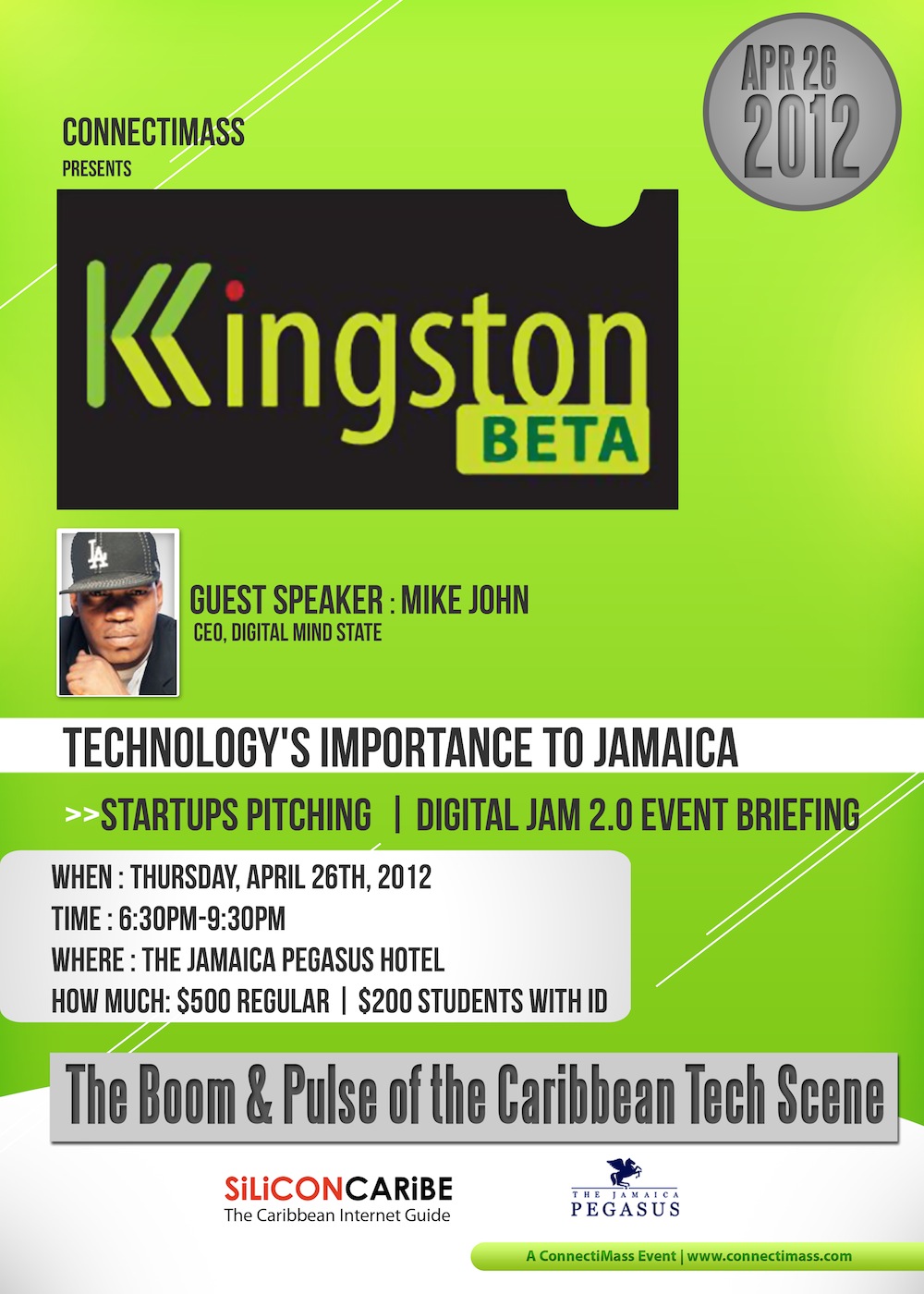 Mike Johns is Jamaican. He is the Founder and President of Digital Mind State formerly known as UrbanWorld Wireless, the Los Angeles based company that bridged wireless technology and hip-hop culture will be the guest speaker in person at the next Kingston BETA, Thursday April 26th, 2012 6:30pm at the Jamaica Pegasus Hotel.